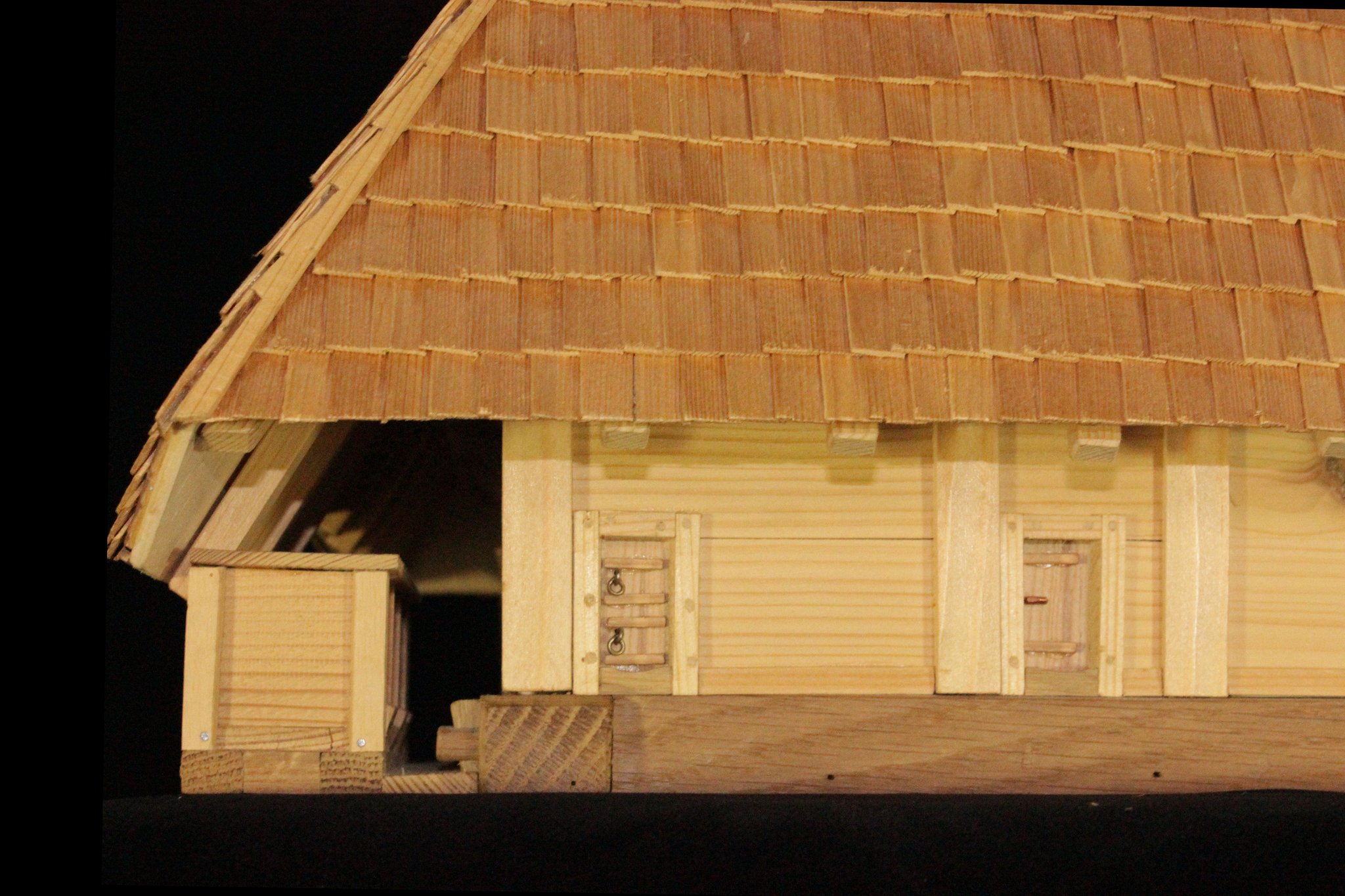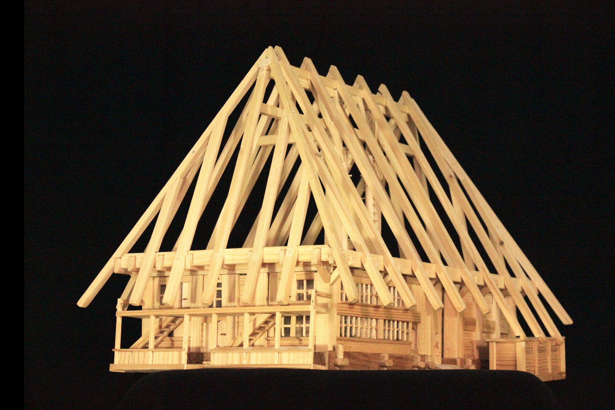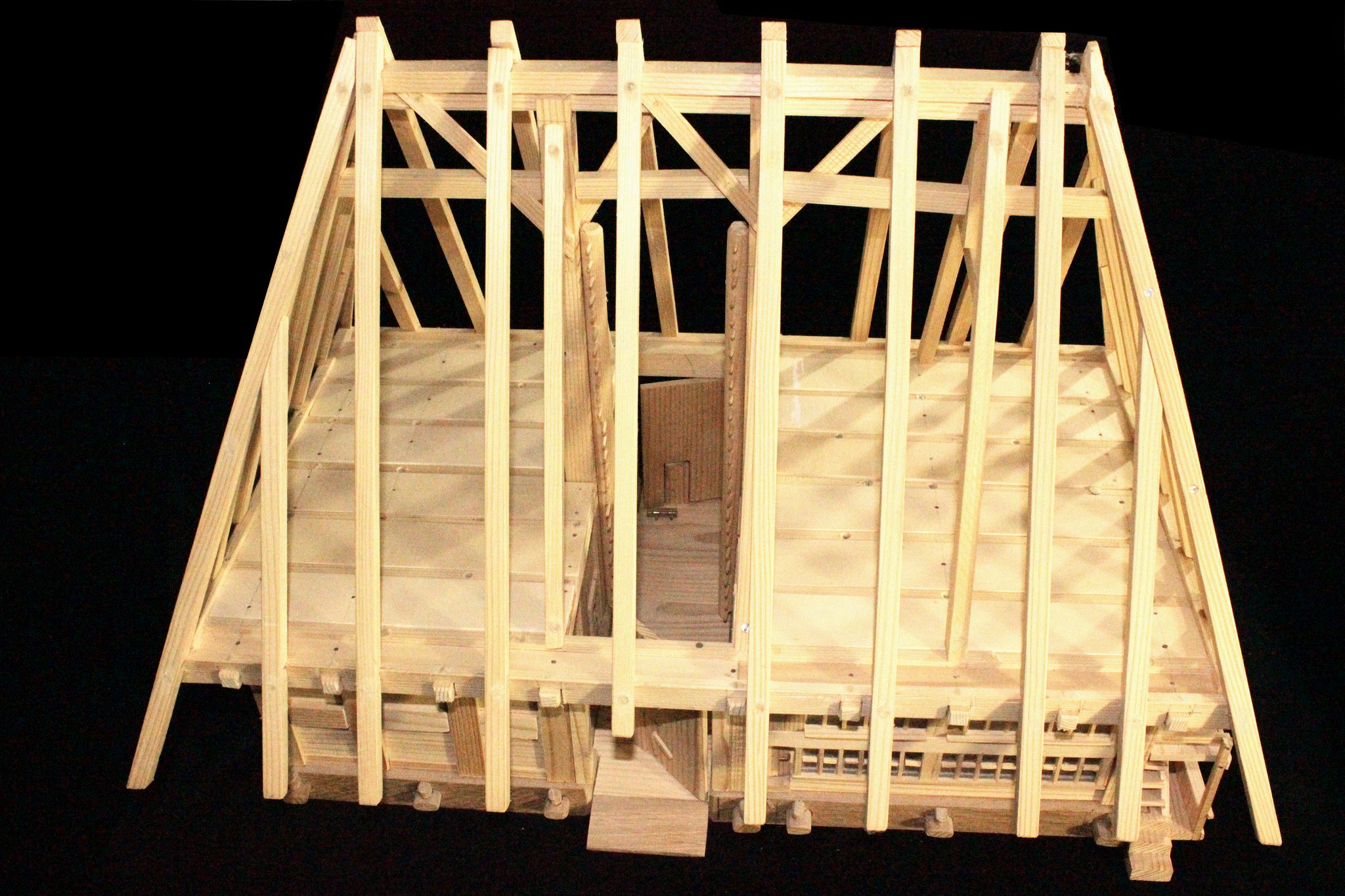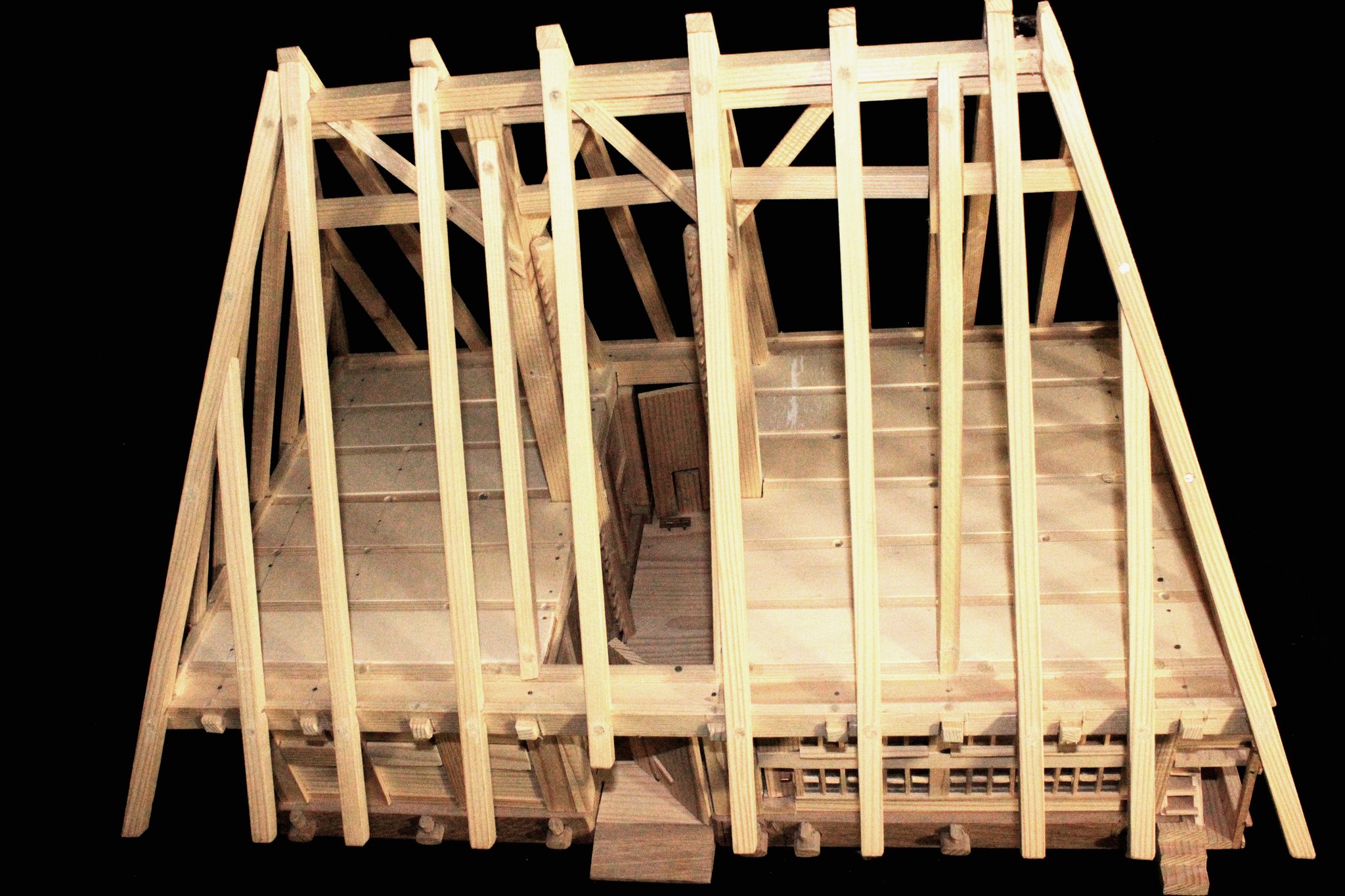 (Beim "Modell" kann das Dach abgehoben werden. Damit wird die Balkenkonstruktion sichtbar.)