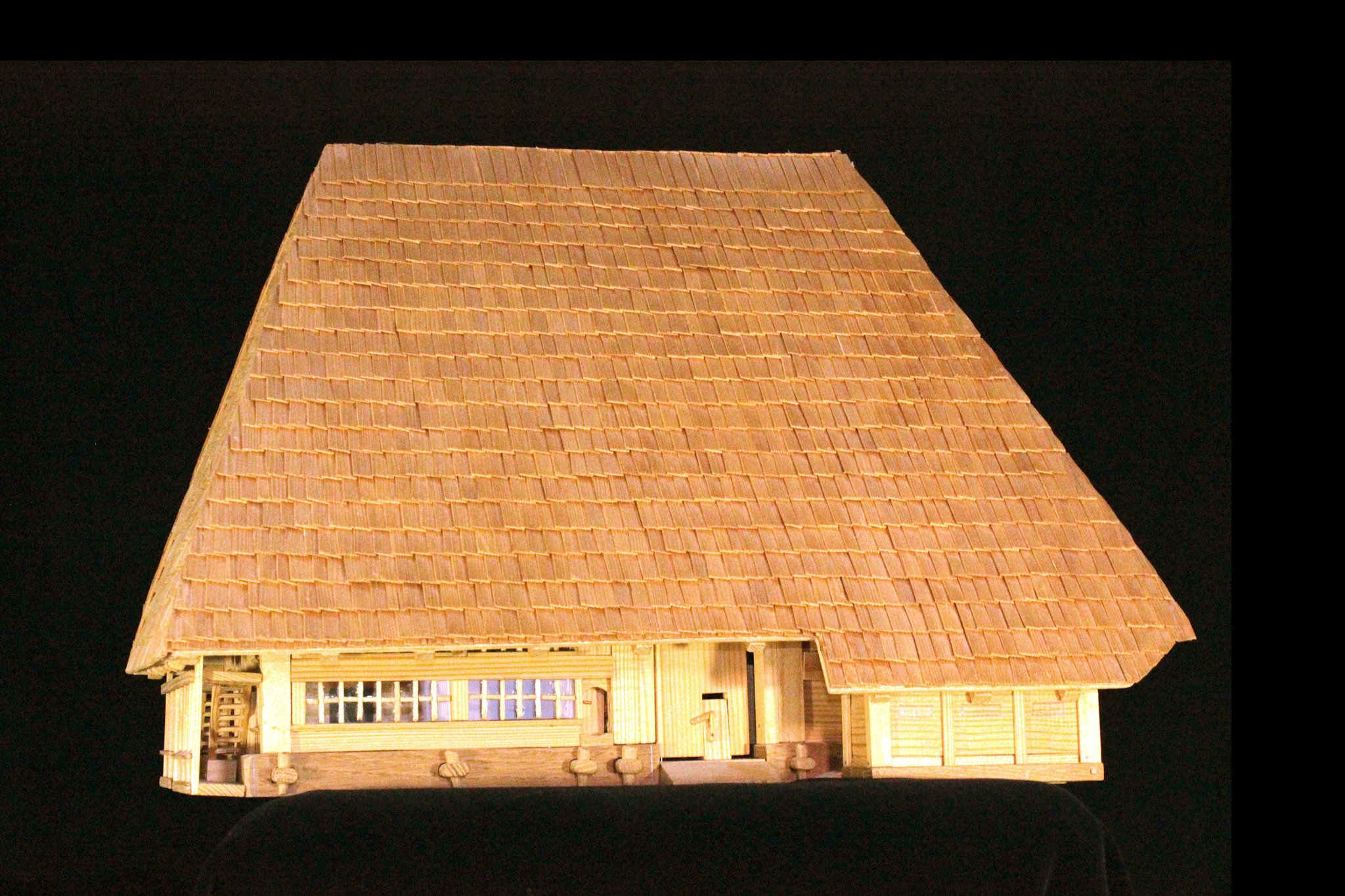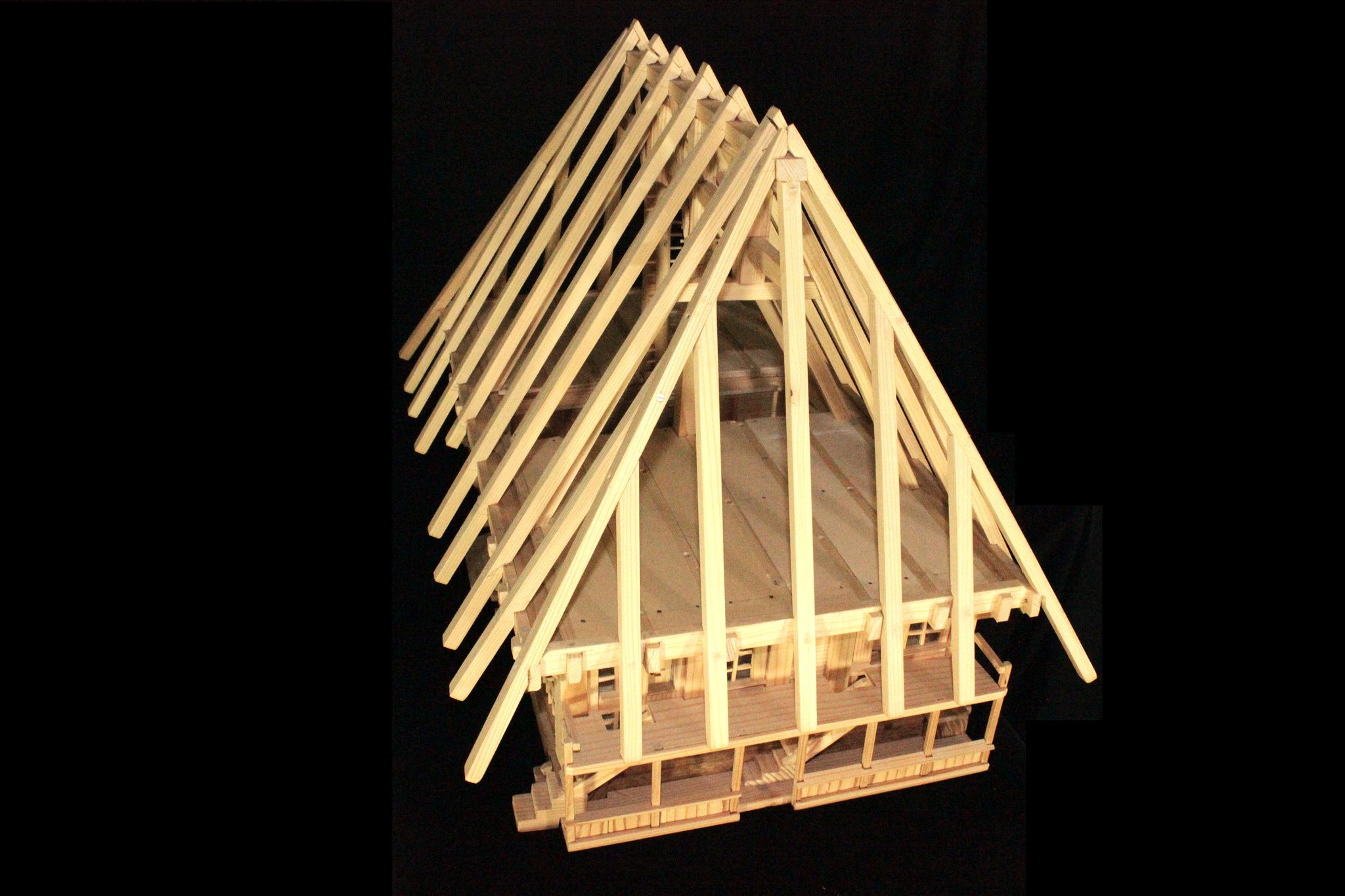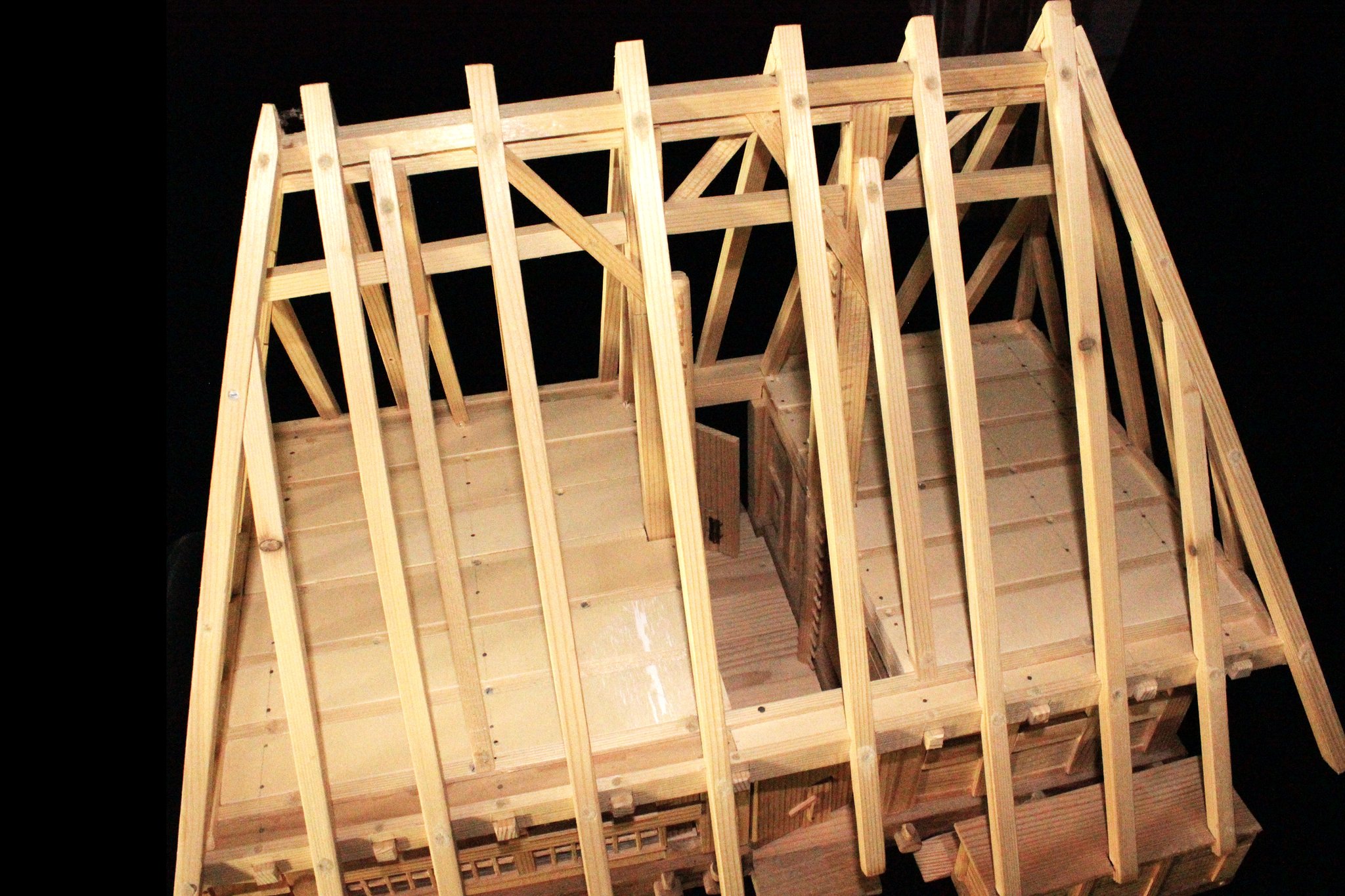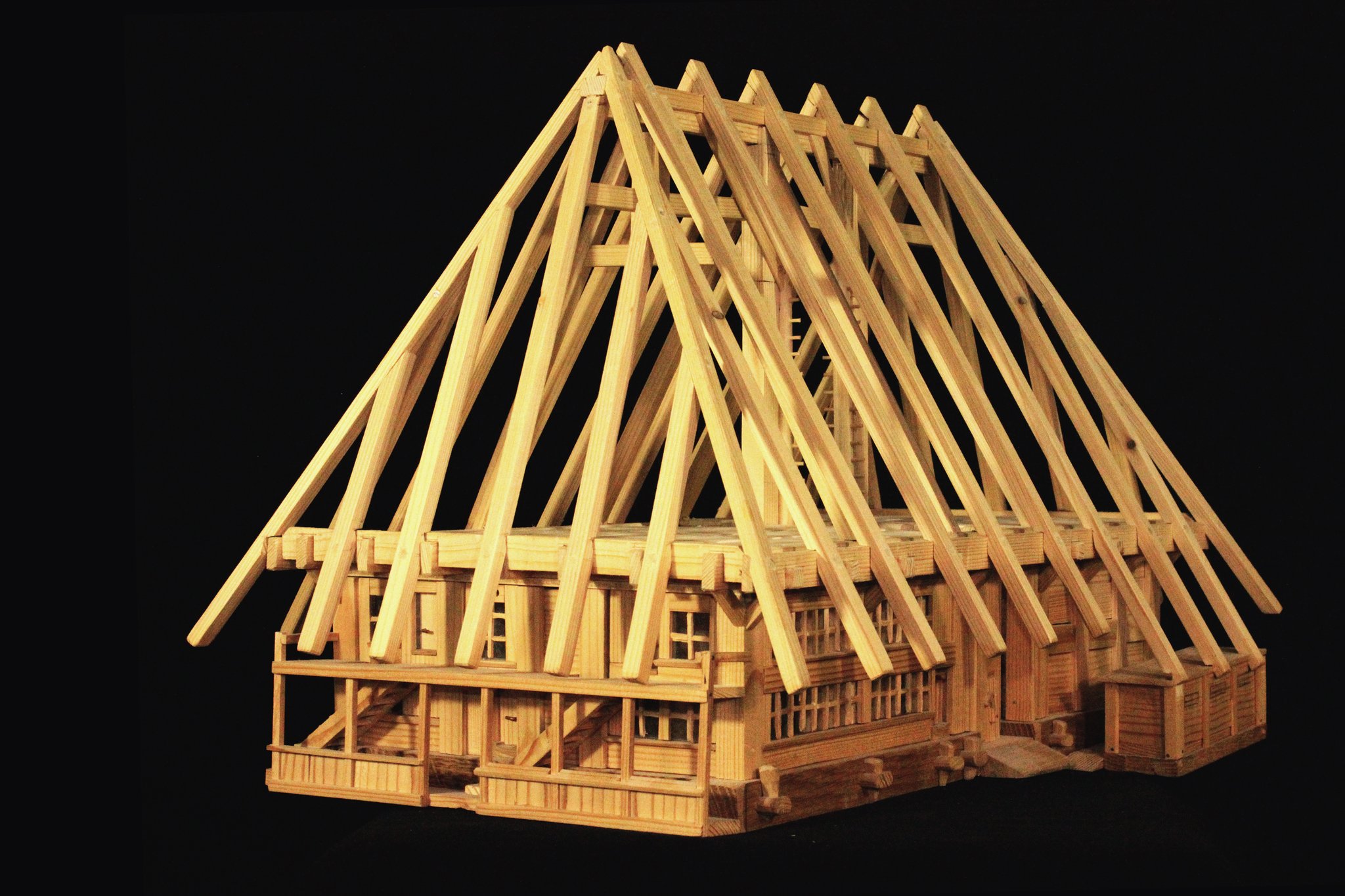 (Beim "Modell" kann das Dach abgehoben werden. Damit wird die Balkenkonstruktion sichtbar.)