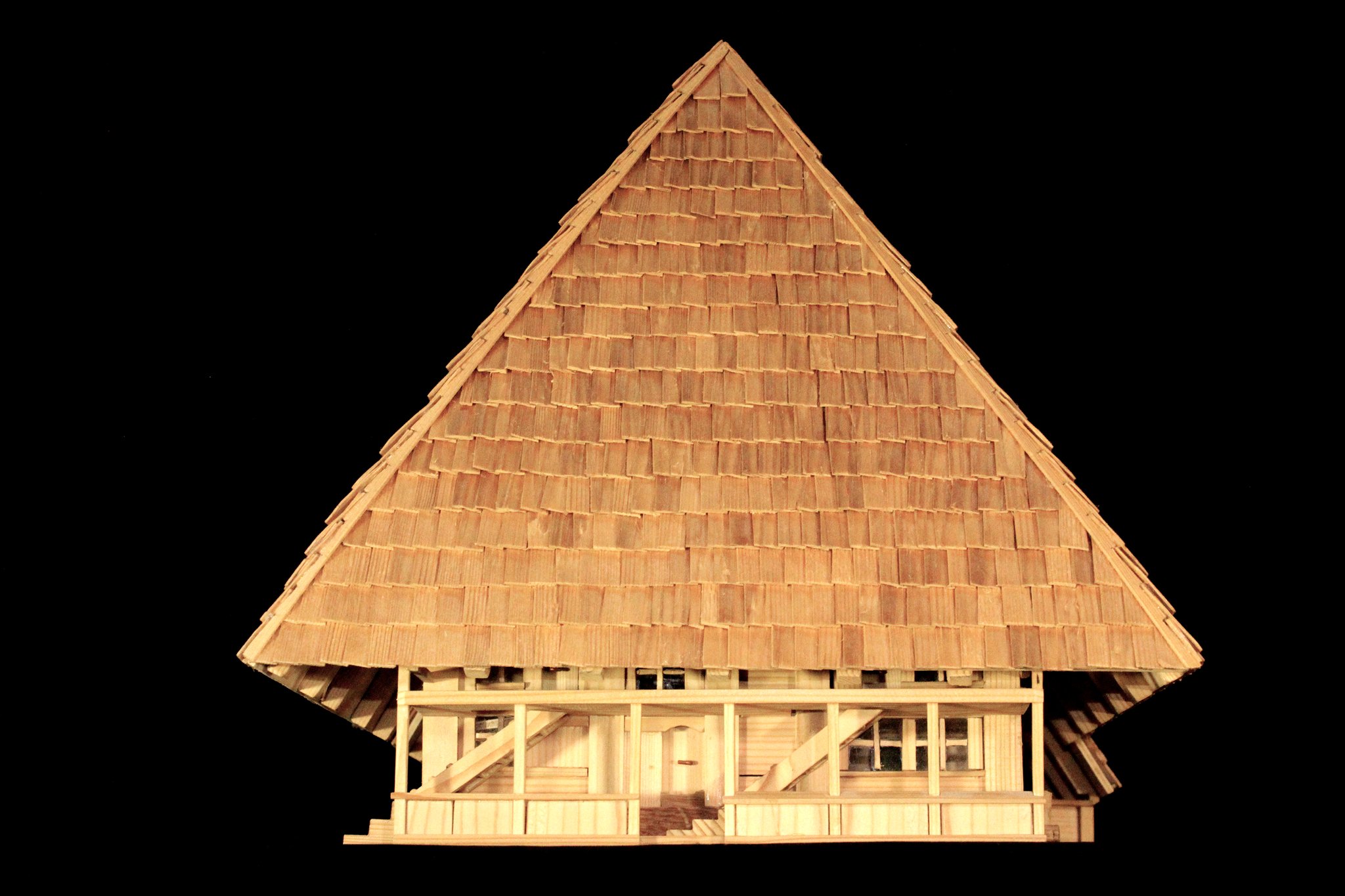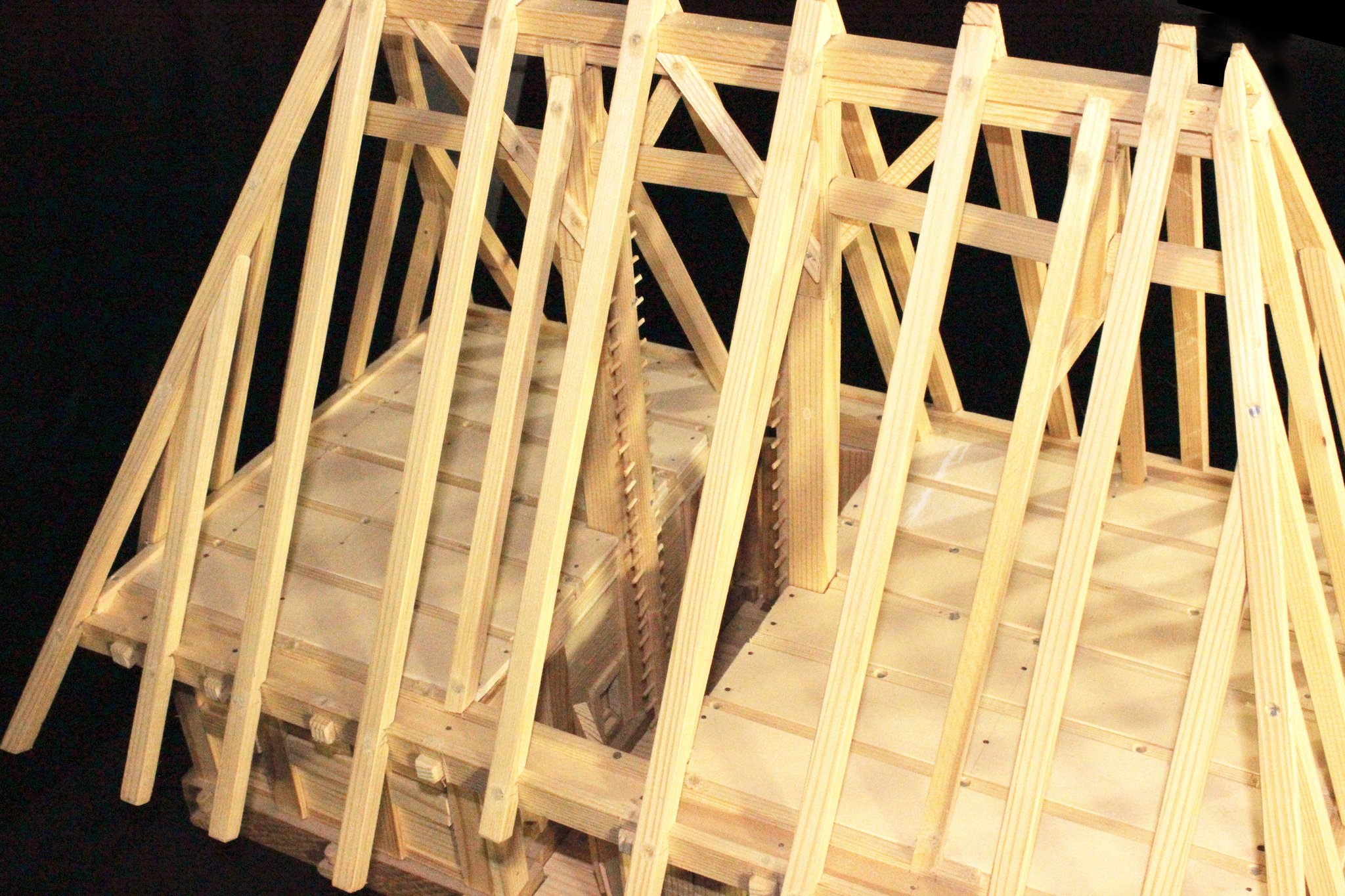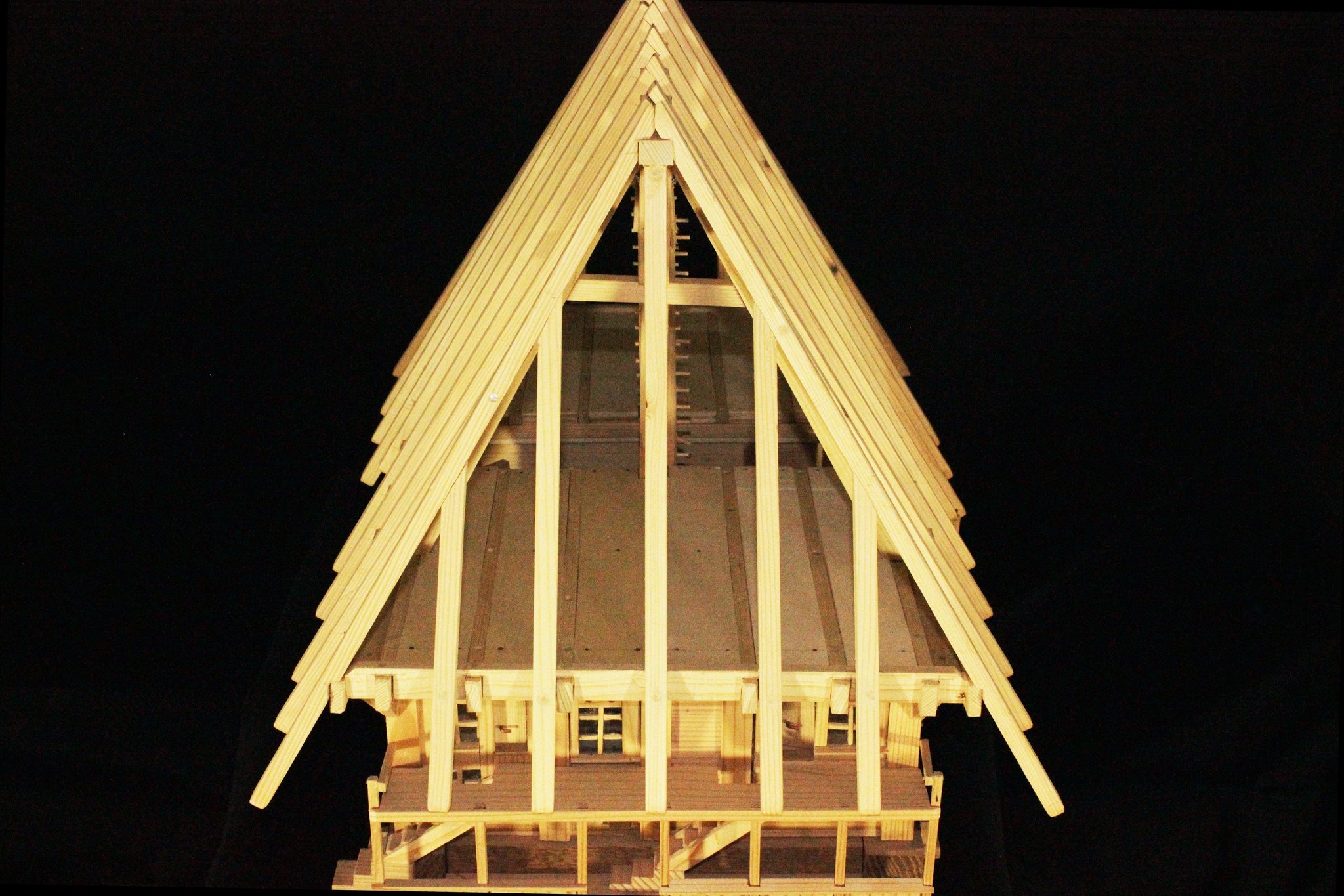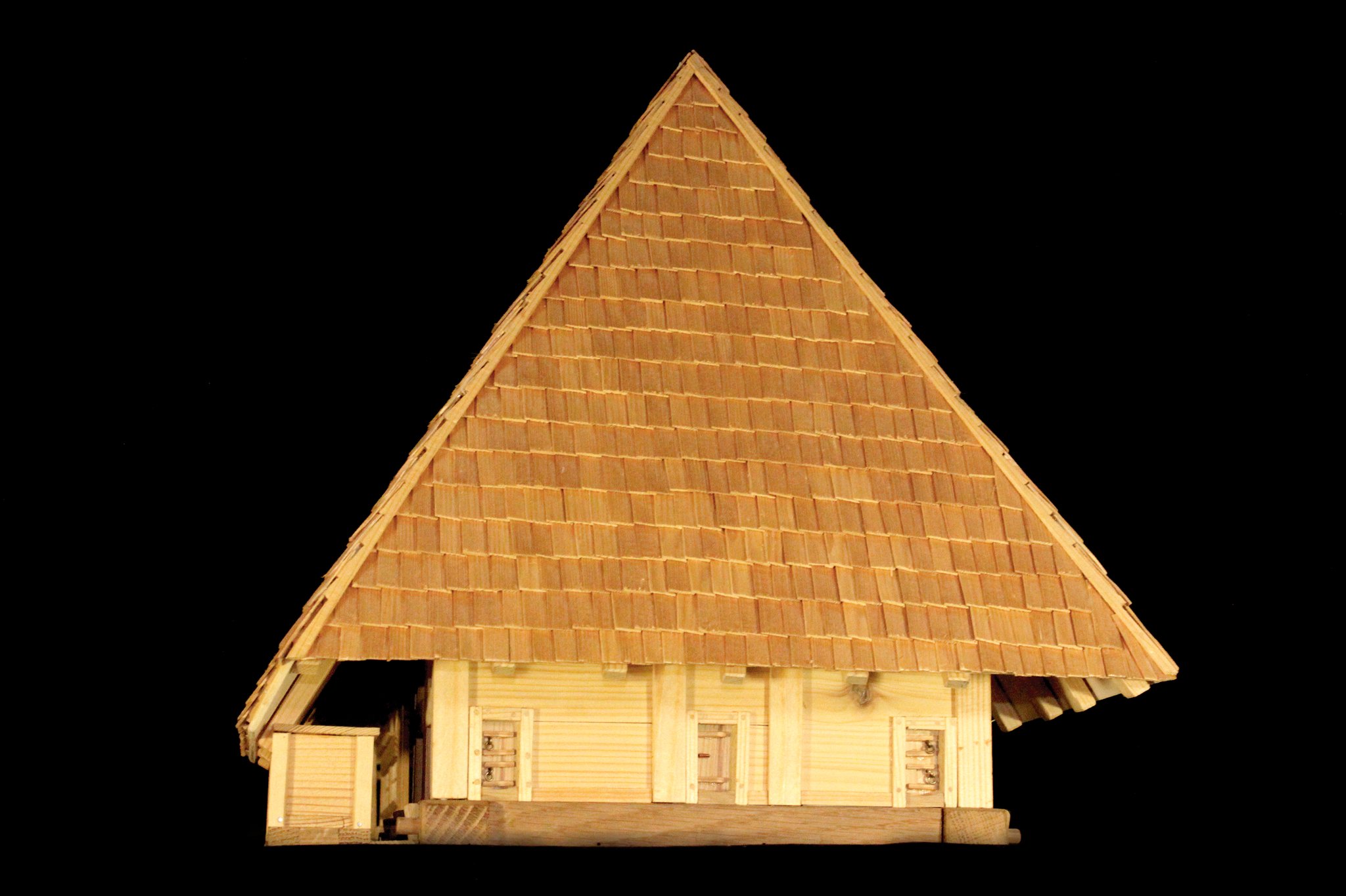 (Beim "Modell" kann das Dach abgehoben werden. Damit wird die Balkenkonstruktion sichtbar.)