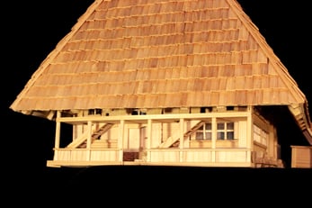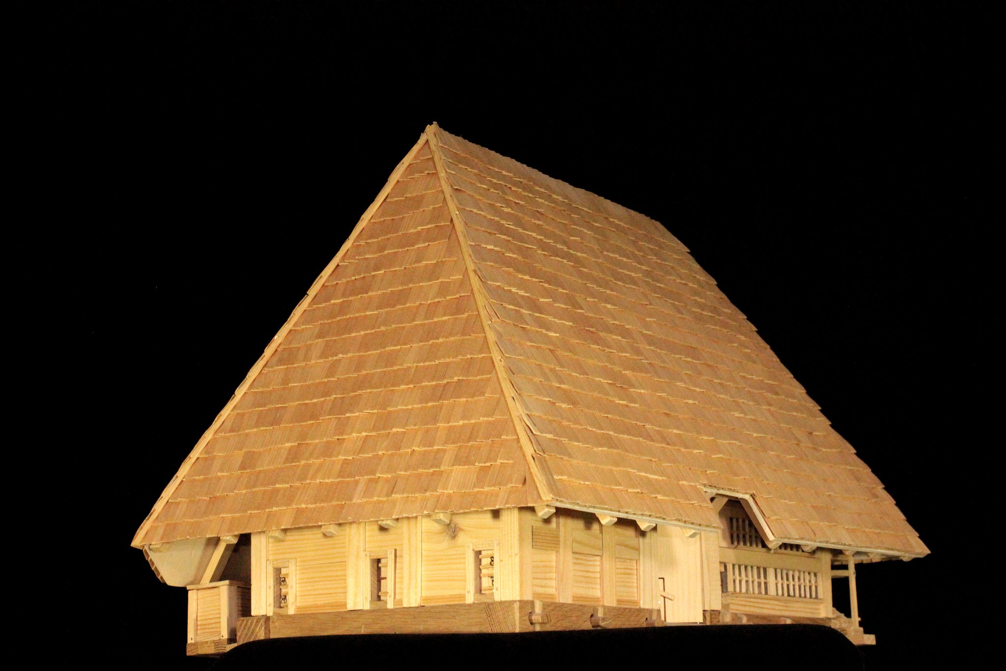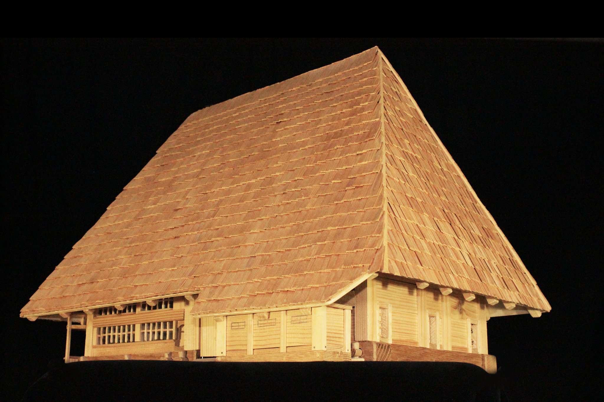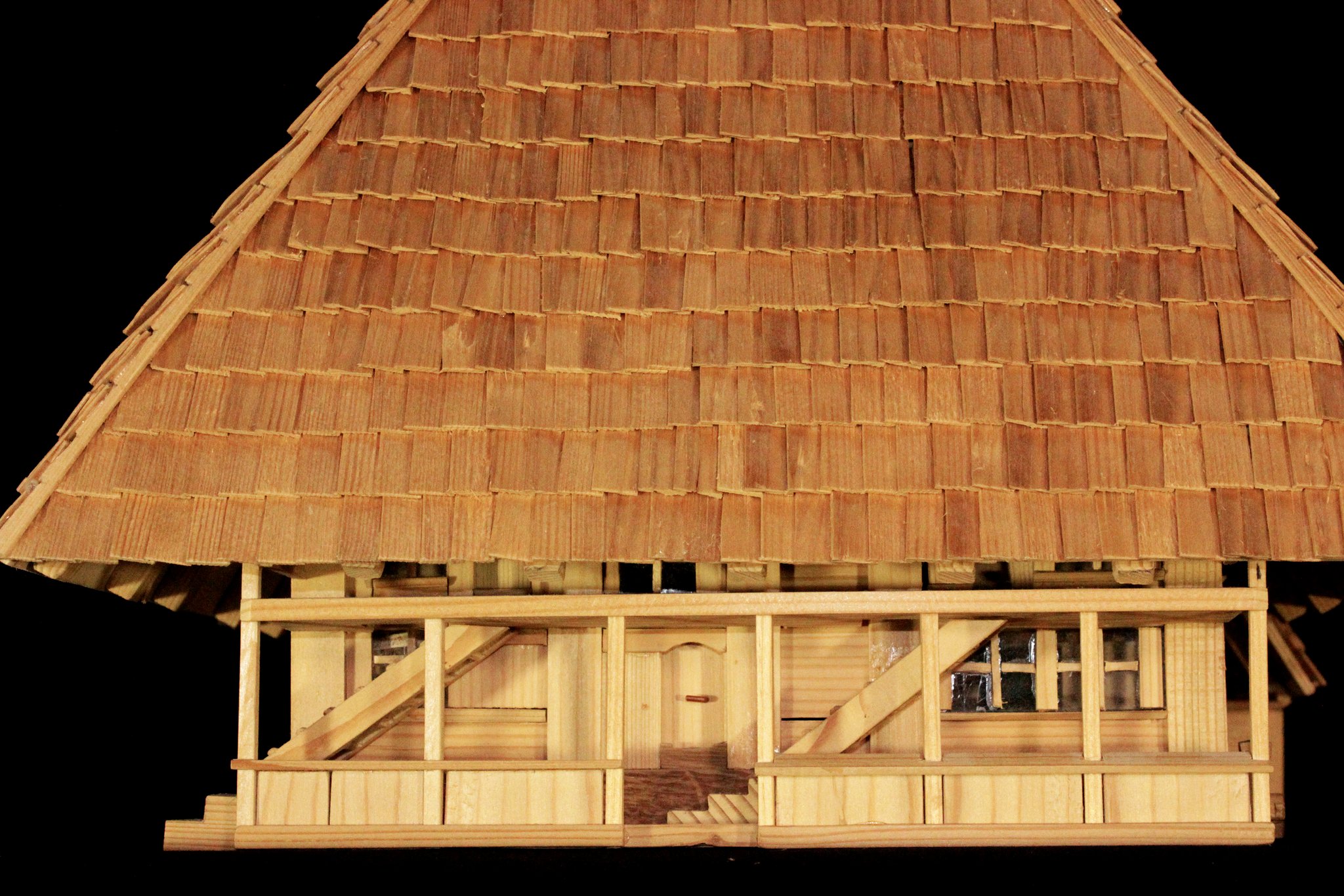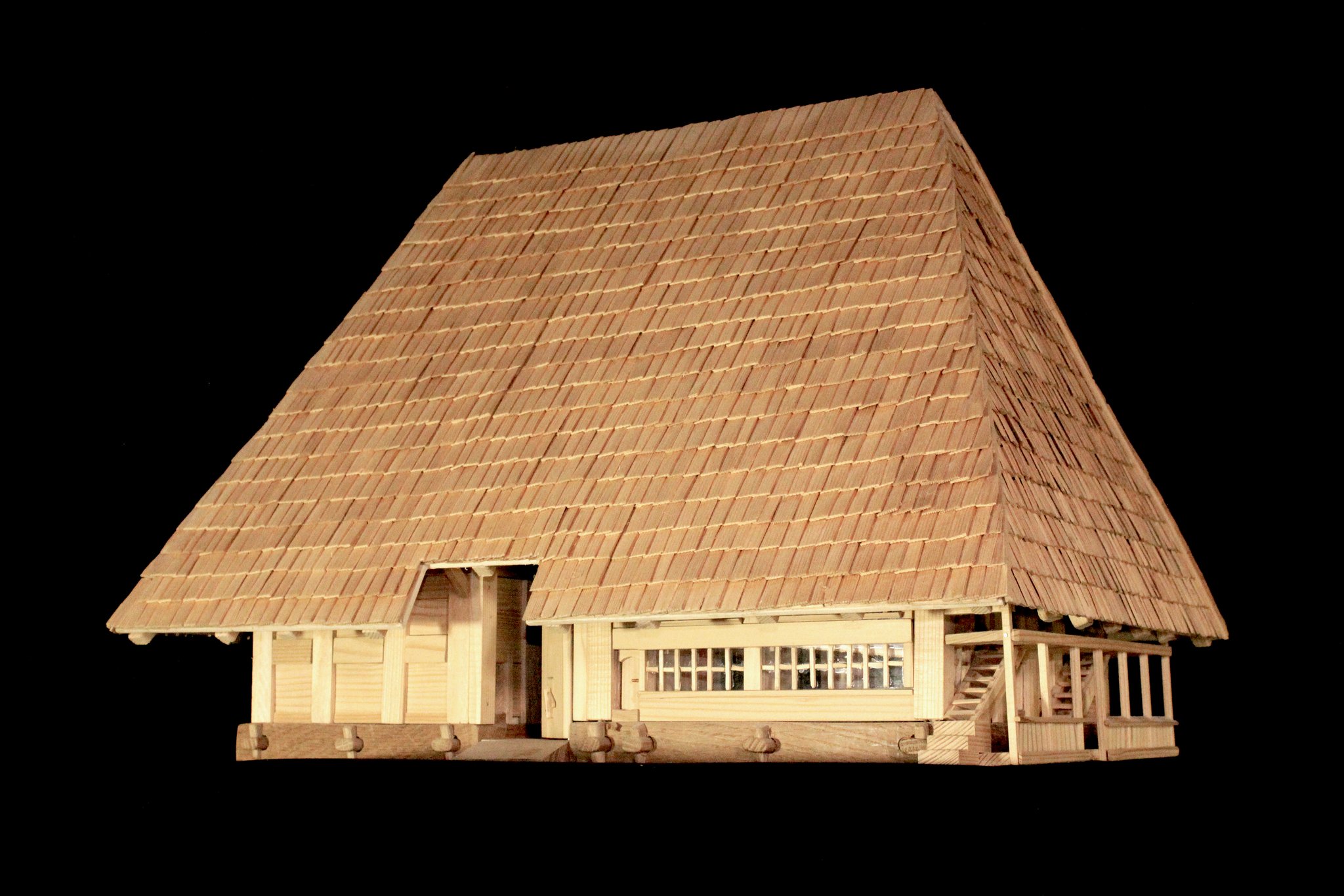 (Beim "Modell" kann das Dach abgehoben werden. Damit wird die Balkenkonstruktion sichtbar.)