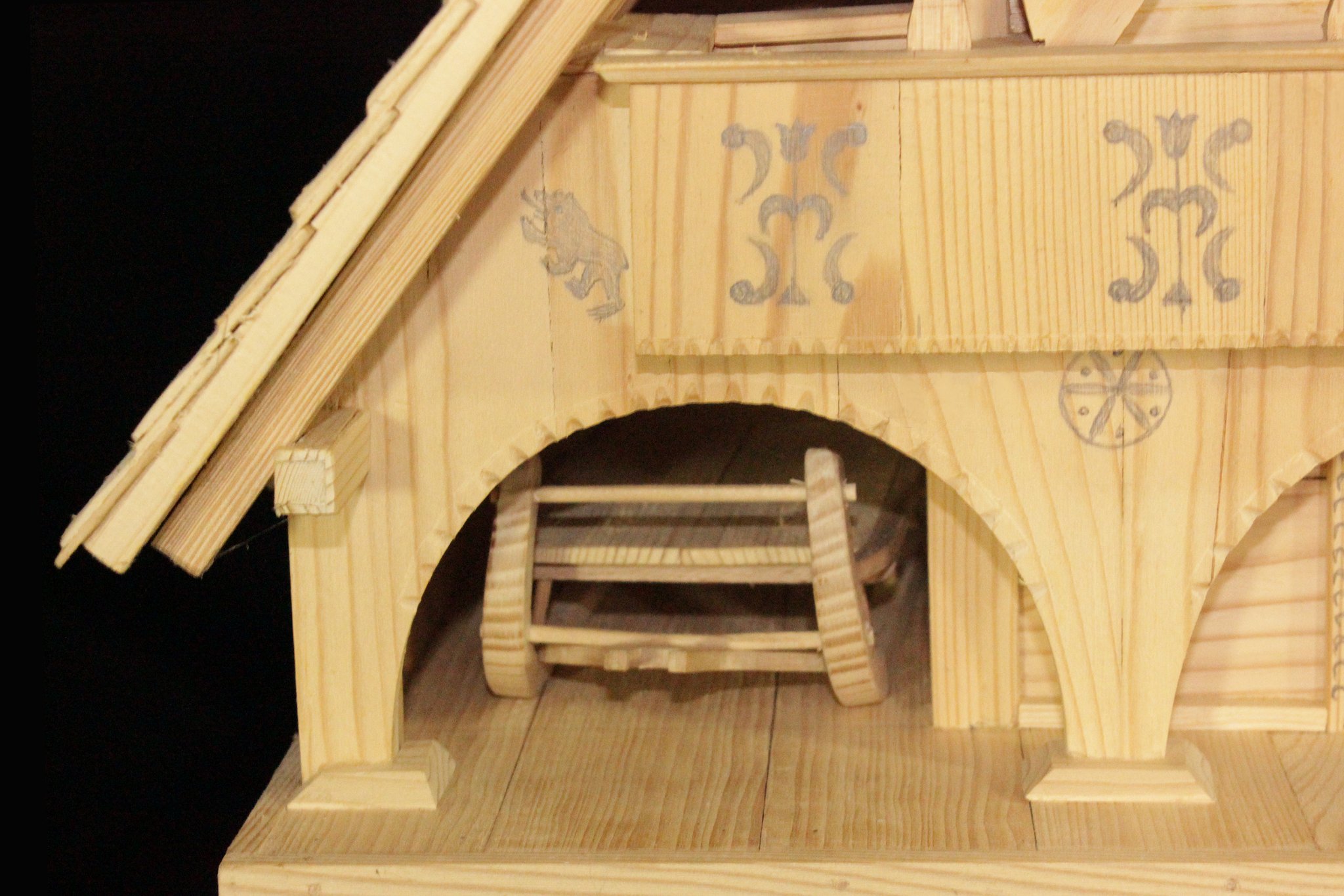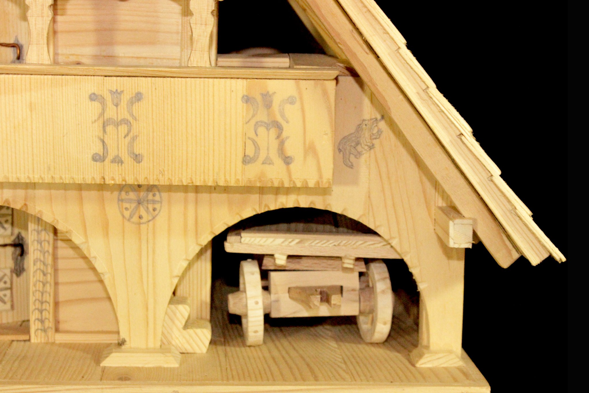 Abseits vom Bauernhaus, damit Feuer nicht beide gefährdet, birgt sie Korn, Geräuchertes, Obst, Selbstgesponnenes und unter Schnitzen und Spreu versteckt die Säckli mit dem „Klingenden“.